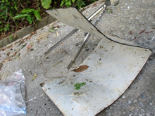 第104回の清掃活動は、沖縄キリスト教学院大学・沖縄キリスト教短期大学周辺で行いました。清掃場所は、シャローム会館駐車場側の道路から、坂田保育所・児童館に出て、坂田小学校に向けての道路沿いで行いました。シャローム会館から保育所までの道は、道幅が狭く、片側に茂みがある道です。以前もこのコースで清掃活動を行いましたが、前回と同様、茂みの中に隠されるように、ゴミが捨てられていました。お菓子の袋、中身が入っているペットボトルや空き缶、そして車の部品や鉄板も捨てられていました。