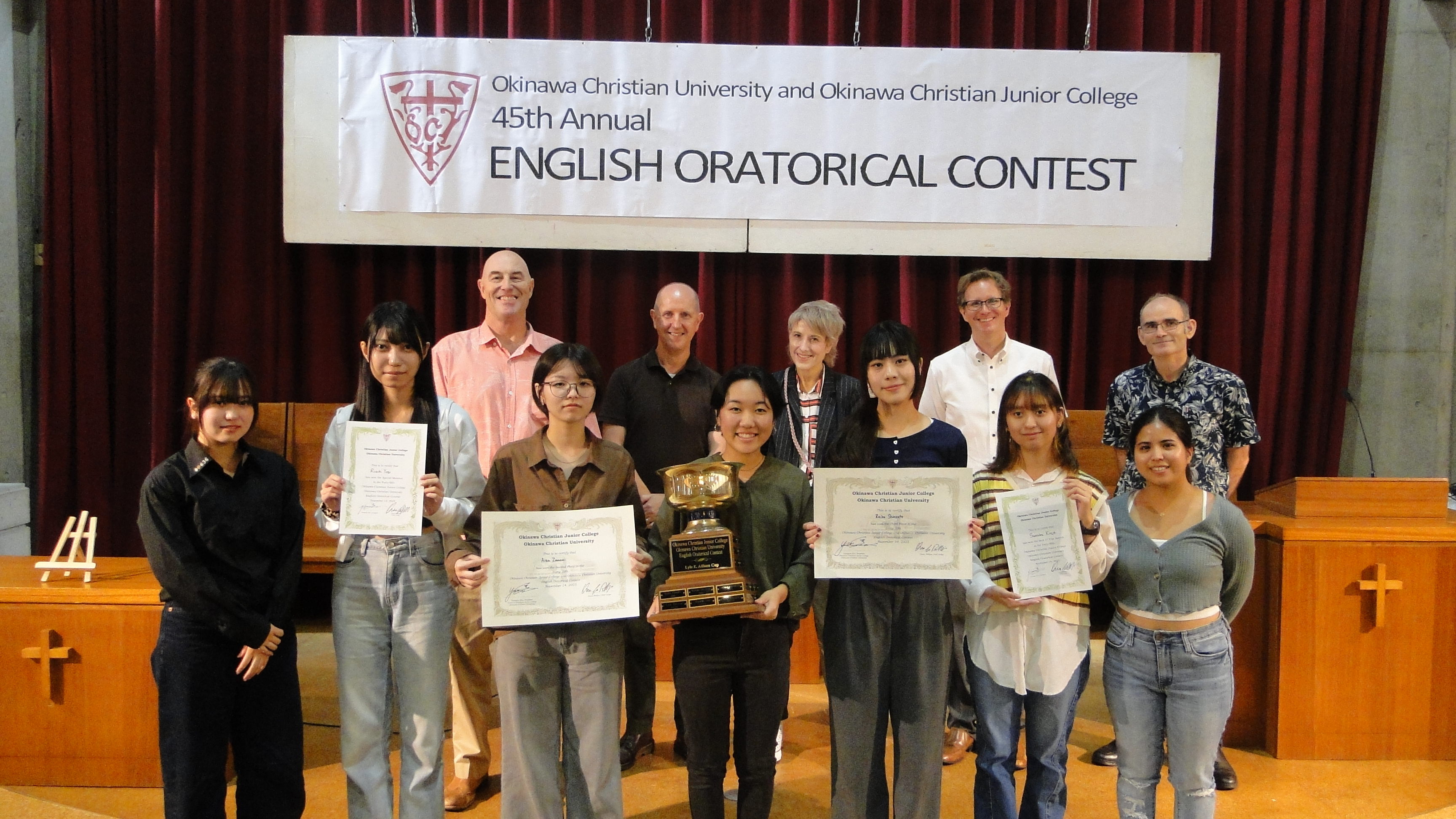 日頃、オーラルコミュニケーションやプレゼンテーションの授業で鍛えた英語力を発揮する絶好のチャンスです。ユーモアあり、感動ありと多岐にわたる内容を英語で論じる、本学ならではの大会です。観客の学生達による「観客参加型ORコード投票」は学生達がつけたスコアが結果に反映されますので、会場が一体感に包まれ大いに盛り上がります。