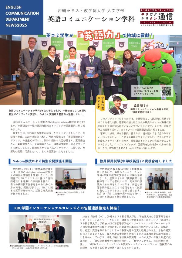 英語コミュニケーション学科の学生による取り組みや、第59回キリ短・キリ学祭の様子などを紹介しています!